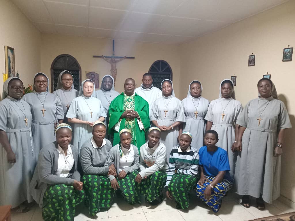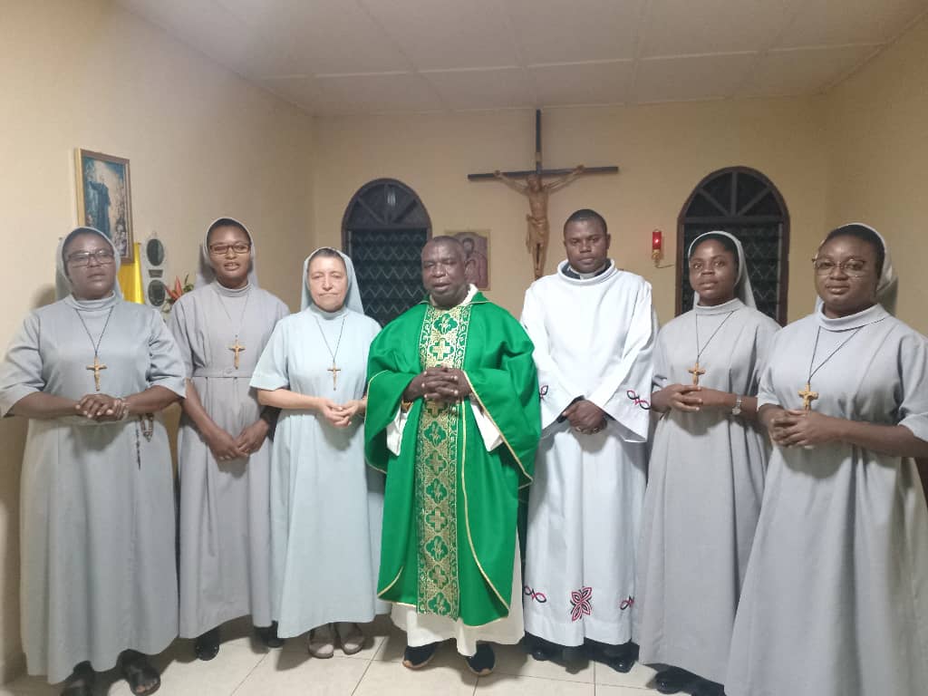 Mes très chères sœurs, loué soit Jésus Christ, aujourd’hui dans notre Communauté D’OMVAN il y’a eu un évènement très important, le commencement du Juniorat strict, avec la Préfète Sœur Roberta et les sœurs junioristes, Cornelie, Angélique, Zygmunta et Patricia. Le début de la formation a été marqué par une Messe célébré par le père Raoul, curé de la Paroisse Saint Cœur de Marie d’Omvan. La communauté rend grâce au Seigneur pour cet évènement et implore son assistance durant tout le déroulement de la formation.