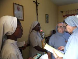 Ce 1er mai 2022 à Brazzaville (République du Congo), été réunis de nombreuses Sœurs de différentes communautés pour assister à la lecture du décret de nomination des Supérieurs de la Délégation Africaine : Sœur Laetitia Niemczura, conseillère S. Roberta Czarnik et S. Esther Inkumne. L’ancien Conseil a été dument remercié pour son service, et le nouveau accueilli avec joie. Sous le précepte de St Paul « L’amour du Christ nous presse (Corinthien 5.14) », elles ont continué à réfléchir à la façon de faire avancer les missions que chaque communauté porte. Les Sœurs ont de plus définit trois axes de réalisation du charisme : espérance, fidélité et unité. Tous se sont ensuite retrouvés pour une Messe festive. Les intentions et œuvres de toutes les Congrégations et communautés d’Afrique ont été portées dans la prière. Un repas partagé a permis aux Sœurs de présenter leurs expériences et de créer de nouveaux liens de collaborations. Nous souhaitons à ce nouveau Conseil ainsi qu’à toutes les communautés et collaborateurs vœu de réussite pour la réalisation de leur devise : « Le cœur en Dieu, les mains aux travail ».