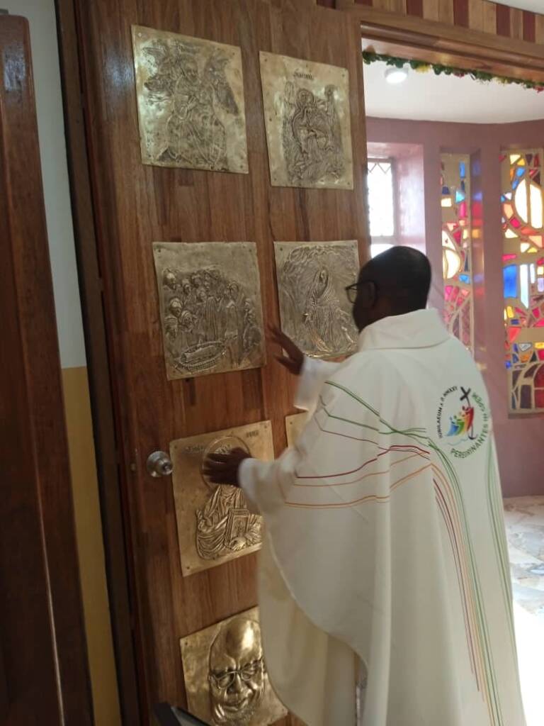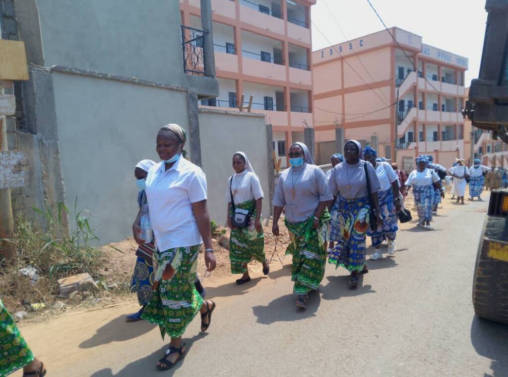Le dimanche 05 Janvier 2025, toutes les sœurs, novices et la postulante de la communauté d’Omvan ont participé au pèlerinage à l’occasion de l’ouverture de la Porte Sainte à la Paroisse Saints Anne et Joachim de Nkoabang. Etaient également présents les sœurs de différentes Congrégations et les fidèles Laïcs de plusieurs paroisses de la zone pastorale de Nkoabang.